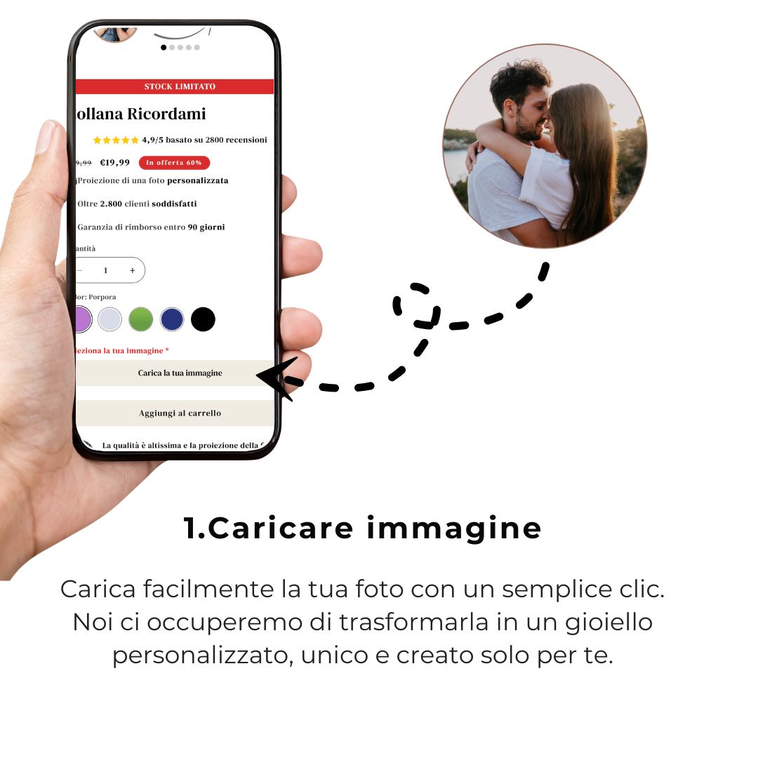 Si miras a través del collar o lo iluminas, aparecerá tu imagen en miniatura personalizada: un pequeño secreto especial que siempre estará contigo.